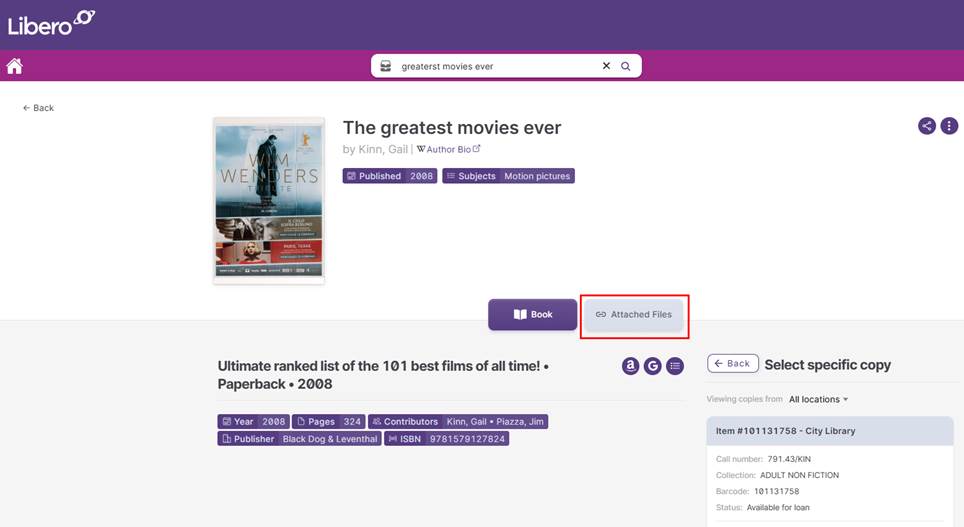- For titles or holdings with files or serial-objects attached, we have added a new format type to the Search details results screen, of “Attached files”