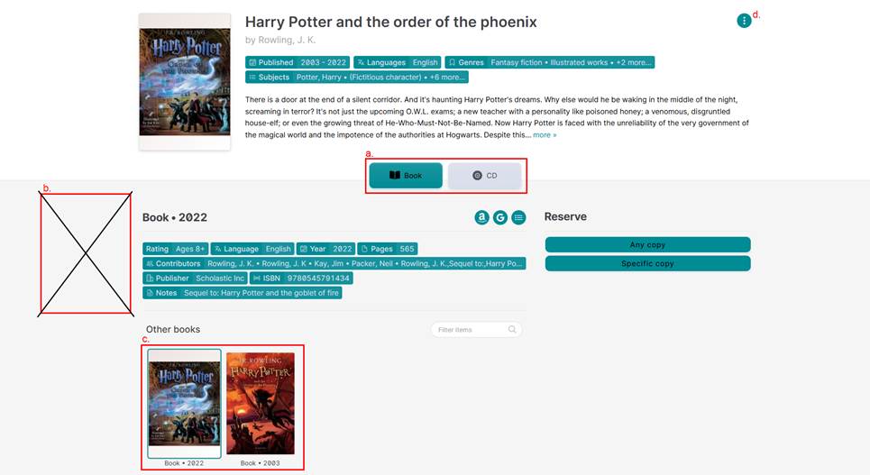 a. Added central tabs for different format type display, eg Book, Audiobook, etc