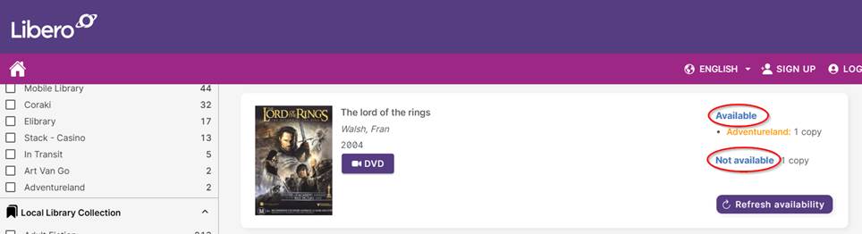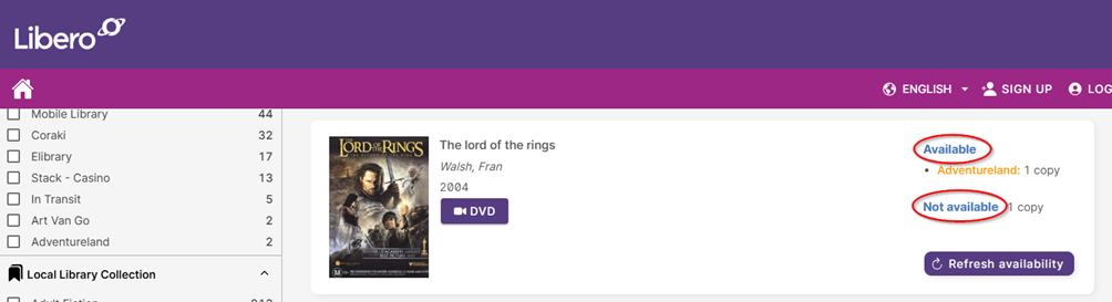 - For local collections, we have made item availability clearer by reducing the data displayed at the brief results level to an availability statement and a title count for each. We have done this by updating Available/Not available statements in the Discovery Search brief results screen.
